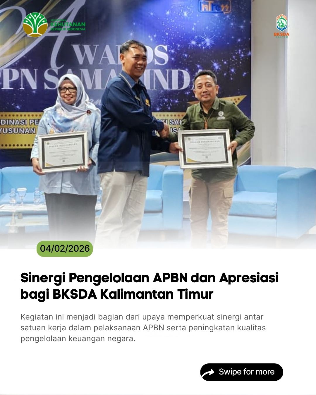 BKSDA Kaltim menorehkan prestasi membanggakan dengan meraih penghargaan kategori Satuan Kerja Dengan Rekon keuangan tercepat dan terakurat pada Tahun Anggaran 2025. Penghargaan diber...