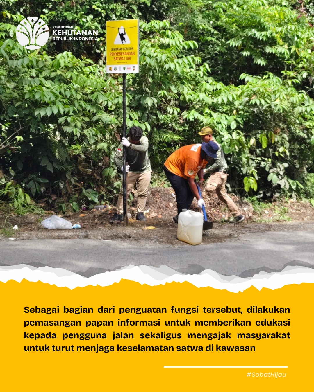 Pemasangan papan informasi di Jembatan koridor satwa bertujuan sebagai media edukasi, peringatan untuk meningkatkan kesadaran masyarakat serta kelestarian satwa liar.